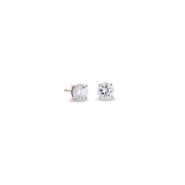 Rose gold finish sterling silver prong set round simulated diamond earrings approx. 1/2cttw - rd 4.00mm