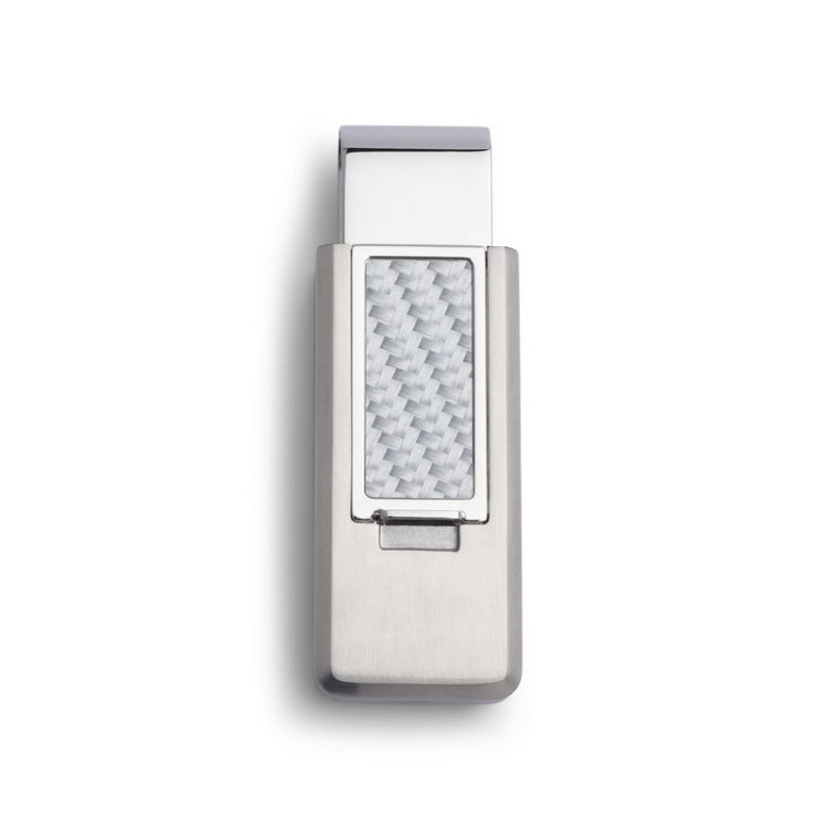 Stainless Steel PVD Finish Flip Money Clip w/White Carbon Fiber