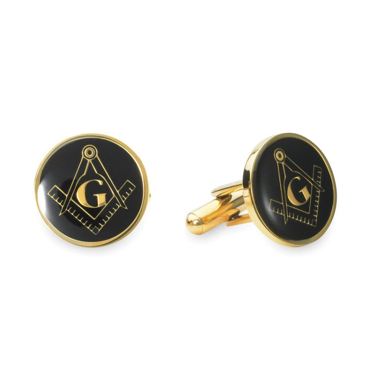 Stainless Steel Round Black & Gold Masonic Cufflinks
