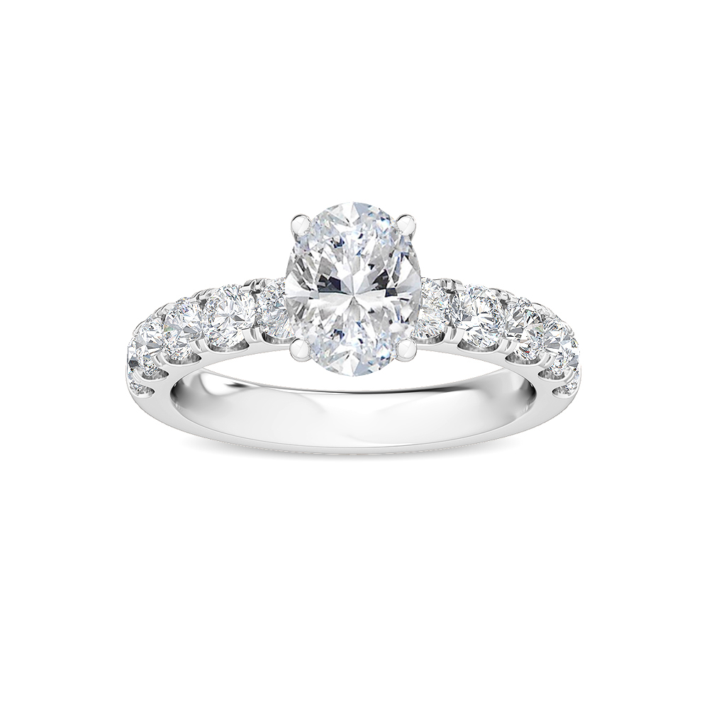 Experience the brilliance and sustainability of our 14KT White Gold Engagement Ring. Featuring a 1 carat oval cut center and 0.88 carats of accent diamonds, this ring sparkles with elegance and is ethically crafted. Upgrade your love story with this timeless piece.
