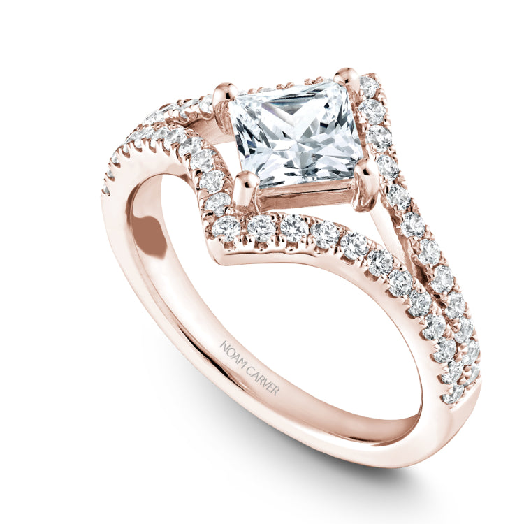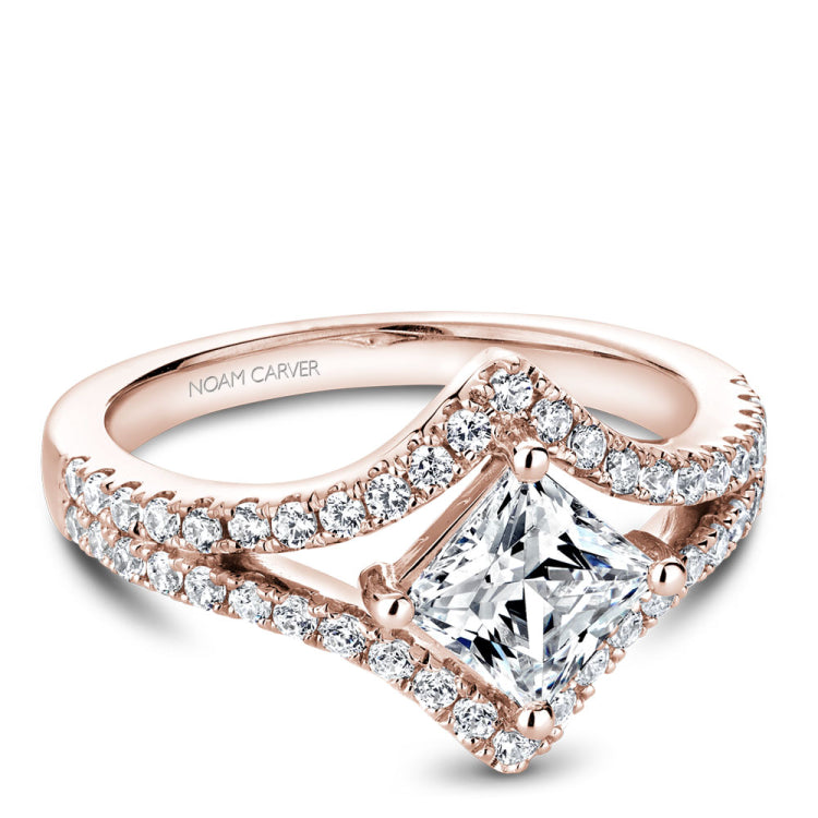 A Noam Carver rose gold engagement ring with 46 diamonds.