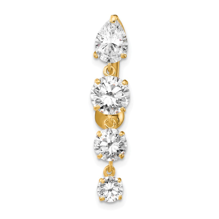 10k White Gold Tops Down W/4 Dangle Czs Belly Dangle