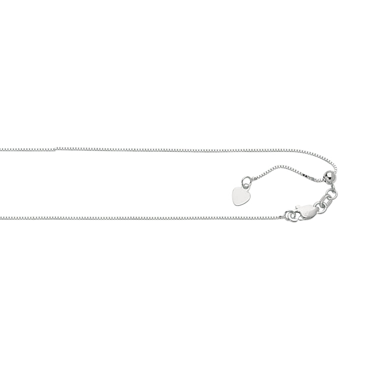 10K White Gold 0.68mm Adjustable (adjusts up to 22 inches) Box 22 Chain with Lobster Lock