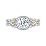 14K Tow-Tone Gold Round Diamond Halo Engagement Ring (Semi-Mount)