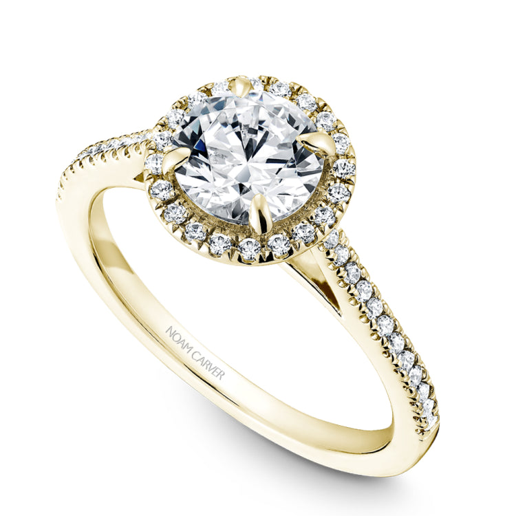 A Noam Carver yellow gold engagement ring with 42 diamonds.