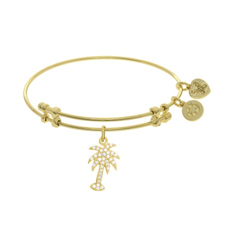 Brass with Yellow Palm Tree Charm with Cz on Yellow Angelica Bangle